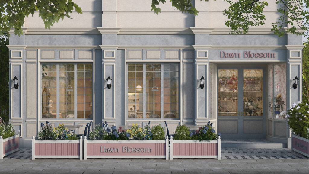Dawn Blossom创立于2016年。该品牌主理人曾有多年旅居海外经营精品花店的体验,在现今飞速发展的思潮中,钟情于复古田园的慢生活。我们结合其品牌,为其梳理并延展至空间,打造一个温情并能留住荏苒时光的闲适场所。